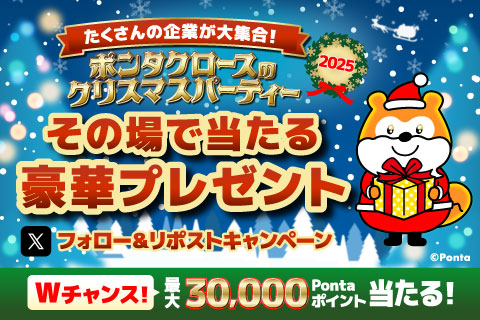 2025年12月25日(木)23:59Pontaと大和コネクト証券など、複数の企業アカウントが開催!その場で当たる豪華プレゼントが盛りだくさん!さらにWチャンスで最大30,000Pontaポイント!