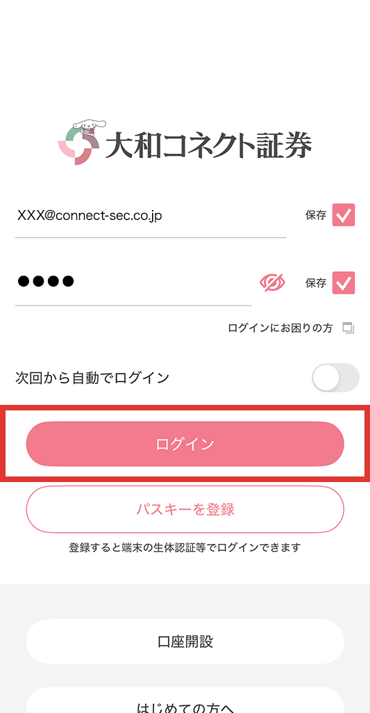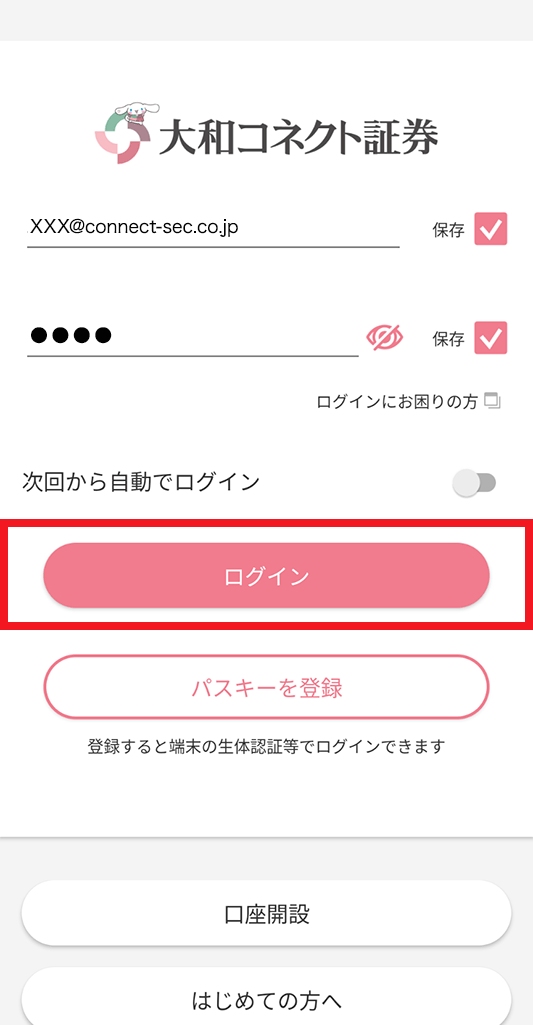 ※ログイン端末がパスワードマネージャーと同期されている場合は、そのままログイン可。