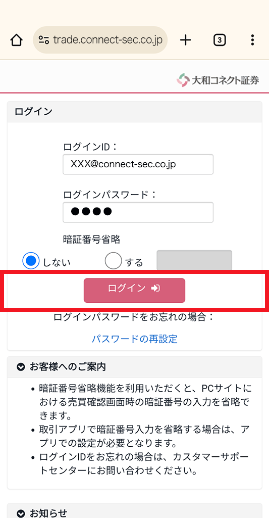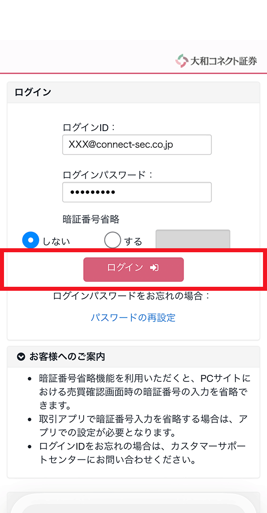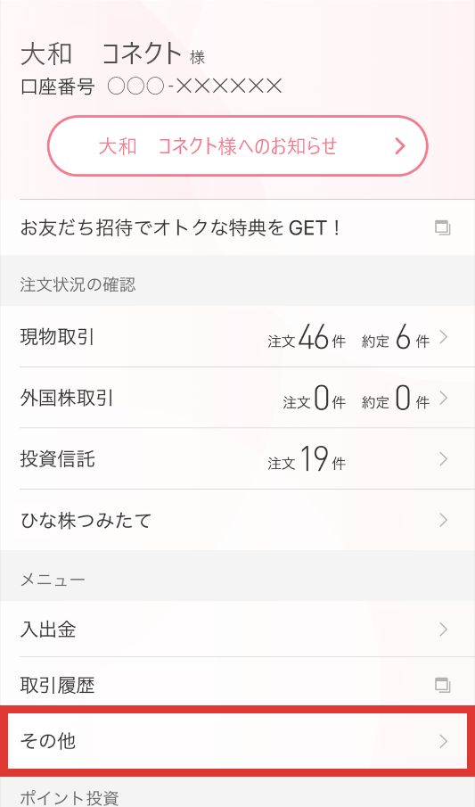 コネクトはスマホ専業証券のため、取引アプリをメインとしていますが、一部サービスのみWEBサービスでもご利用可能となっています。