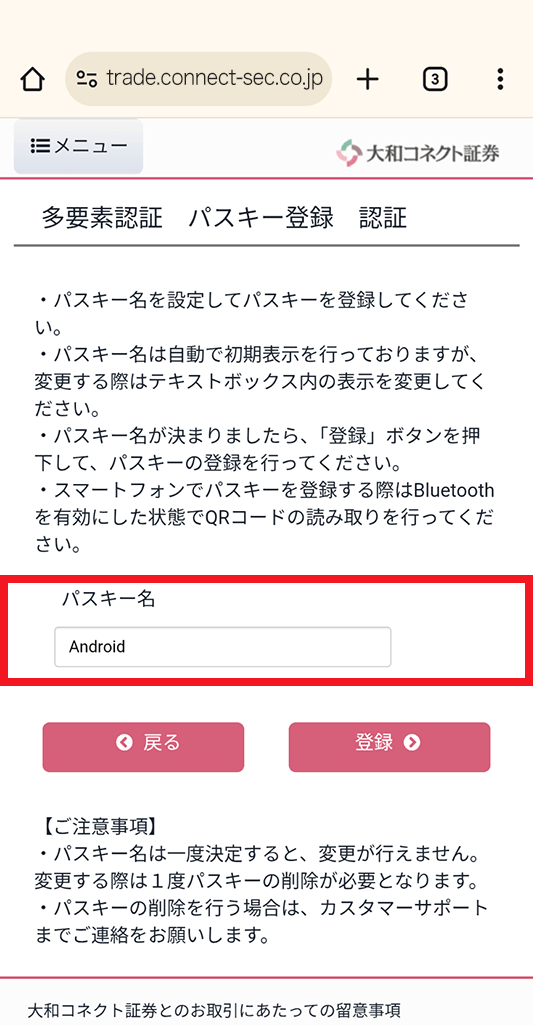 パスキー設定方法(WEBサービス(スマホのブラウザ))