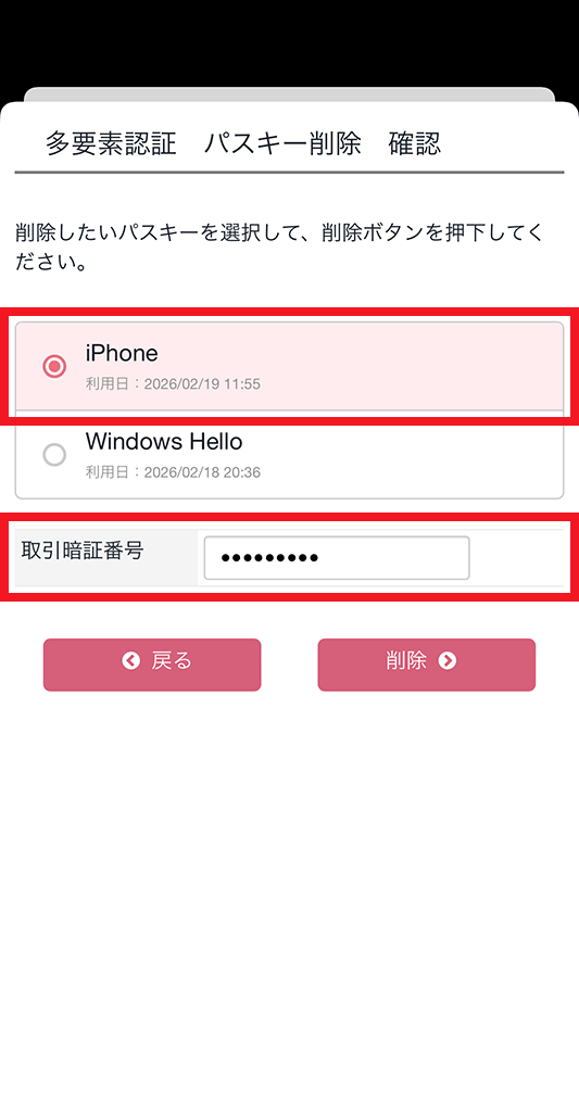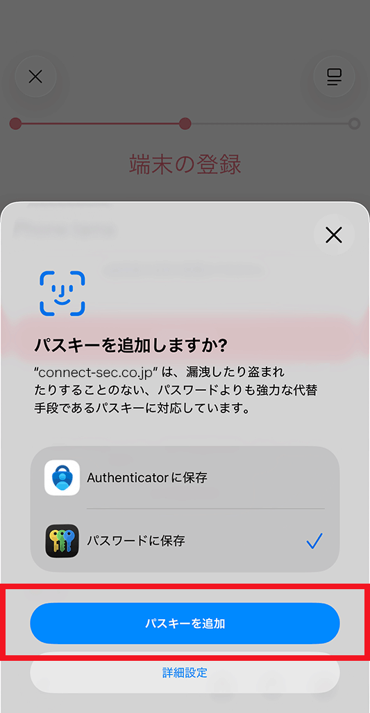 複数端末をお持ちの場合は、一度その端末でパスキー登録を行ってから、紛失・盗難した端末の登録を削除してください。