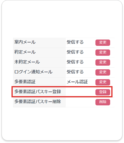 | パスキー登録 | スマホアプリで パスキー登録 |